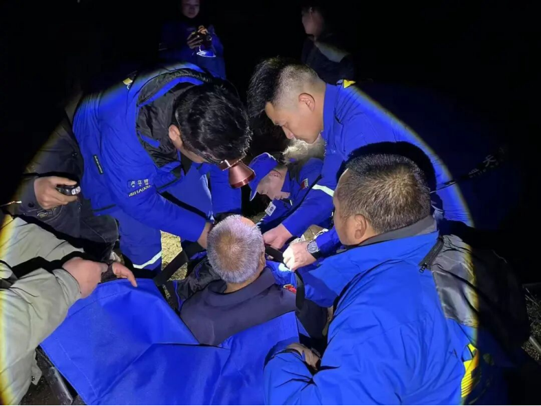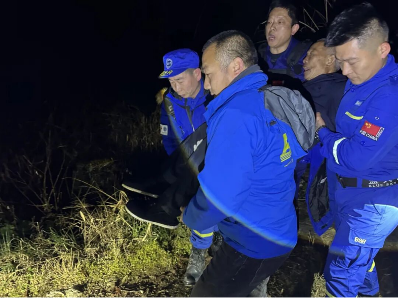 20时35分,搜救重点转移至距离当前地点500米外的另一区域。21时25分左右,队员们在隐蔽的小水沟旁找到了老人。此时,老人身体虚弱,体温下降。